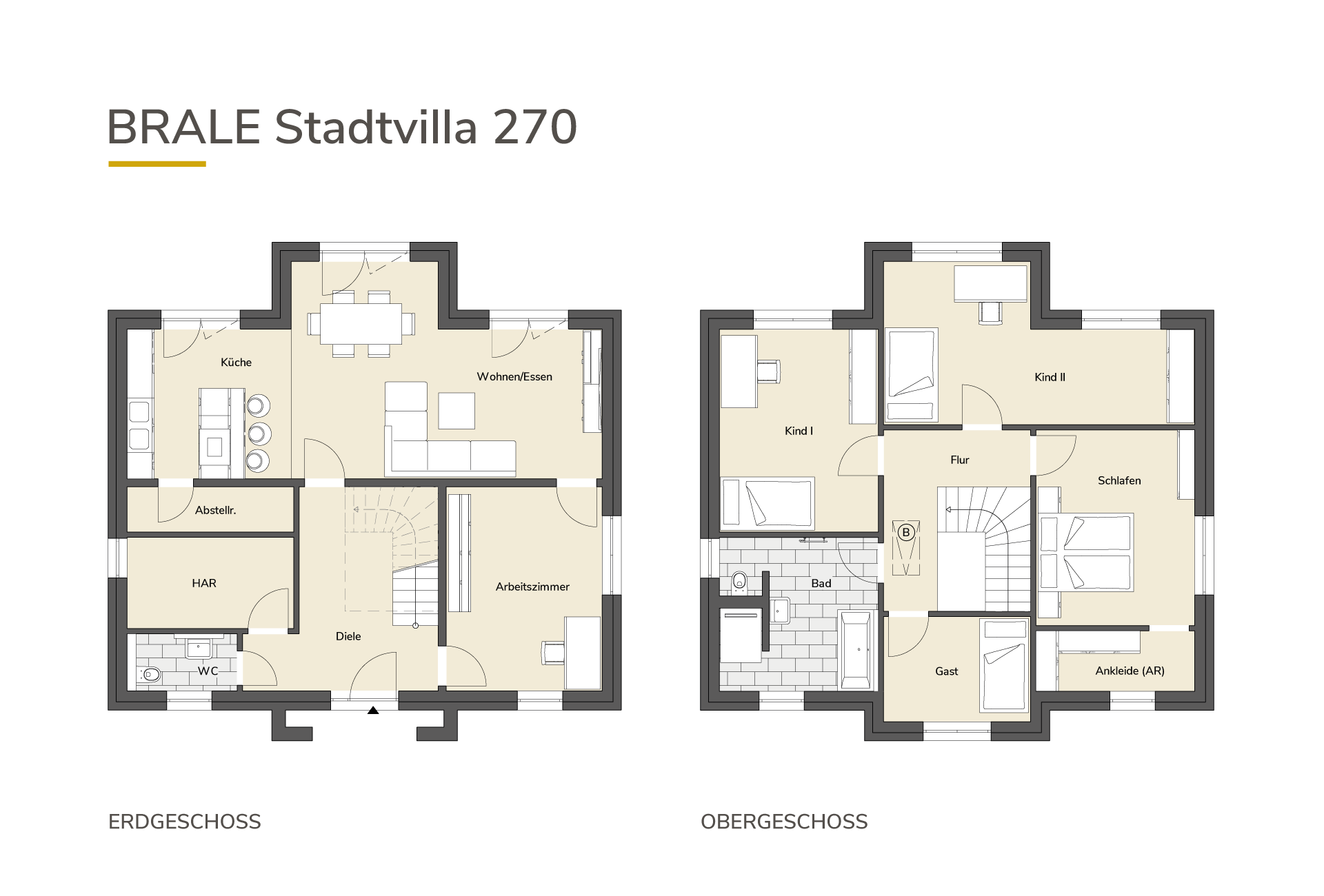 Die BRALE Stadtvilla 270 vereint neoklassizistische Eleganz mit moderner Bauhaus-Architektur. Auf rund 170 m² bietet sie 6 bis 7 Zimmer, zwei Bäder und eine repräsentative Gestaltung, die Stil und Großzügigkeit ausstrahlt.