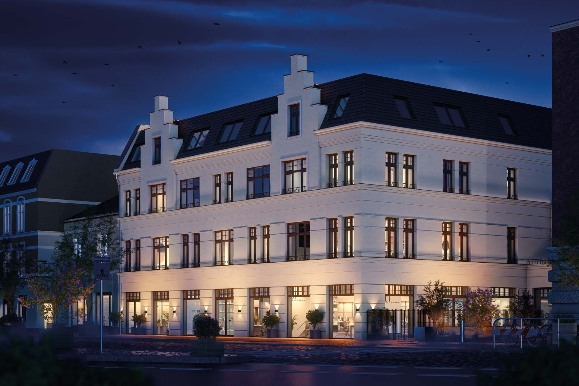 Die insgesamt 55 Wohnungen besitzen allesamt durchdachte Grundrisse und verteilen sich über 3 beziehungsweise 4 Etagen (Vorderhaus). Die Bandbreite reicht von klar geschnittenen 1-Zimmer-Wohnungen mit 32 m² hin zu exklusiven 4-Zimmer-Maisonette-Wohnungen mit 116 m² Wohnfläche, zwei Bädern und einzigartigen Dachterrassen.